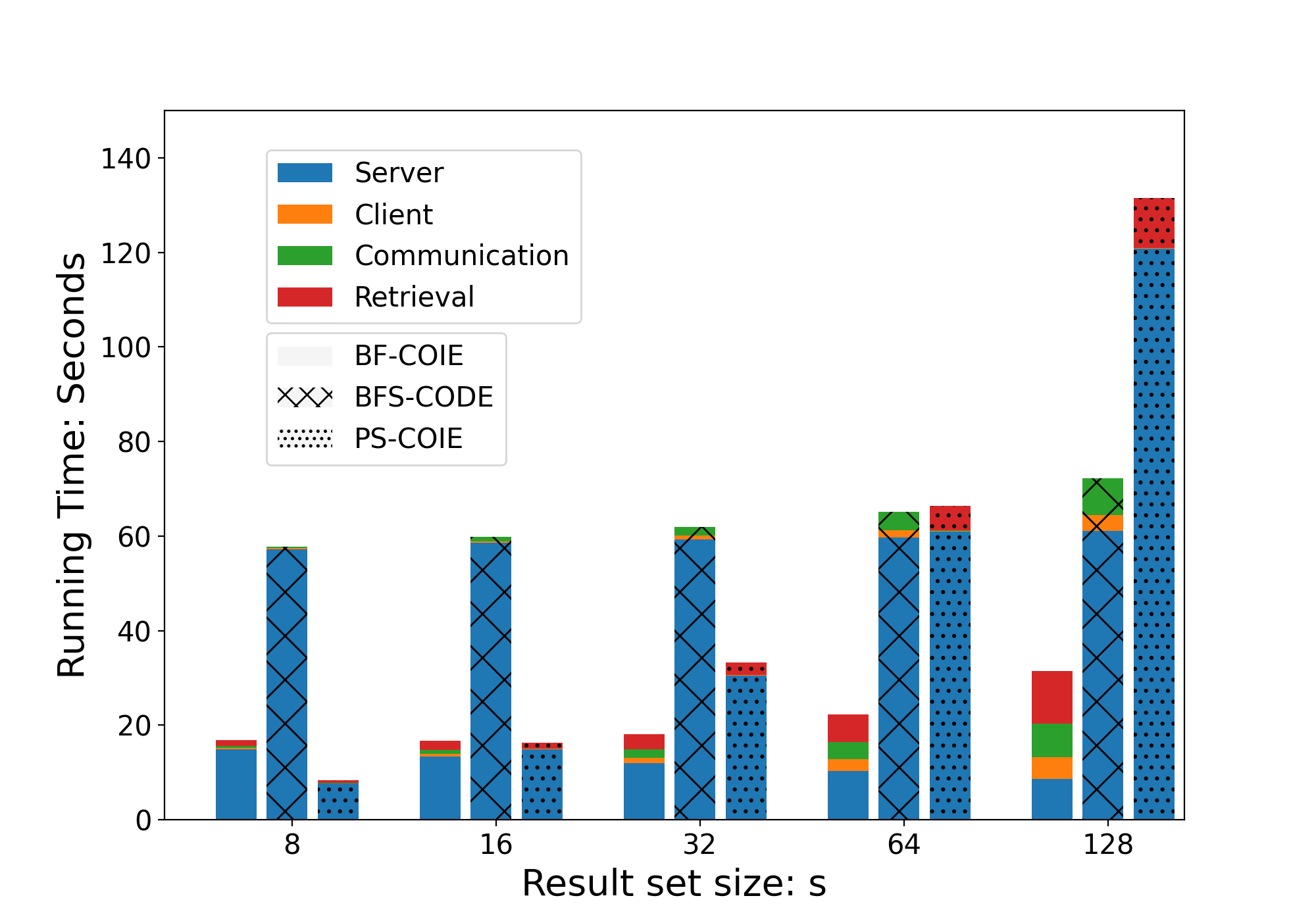 However, if reliance on PIR is undesirable, we also offer a variant that fetches the values directly (i.e., the protocol w/ BFS-CODE in Figure [fig:comparison]; see Sections 5 and 6.4 for more detail), as in prior work.